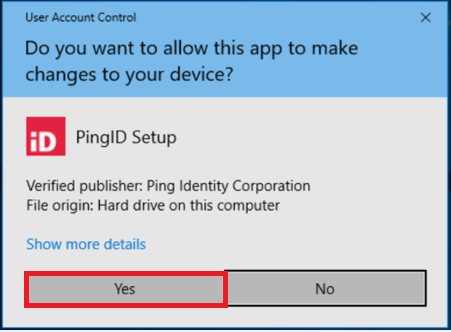 If prompted 'do you want to allow this app to make changes to your PC?', select Yes.