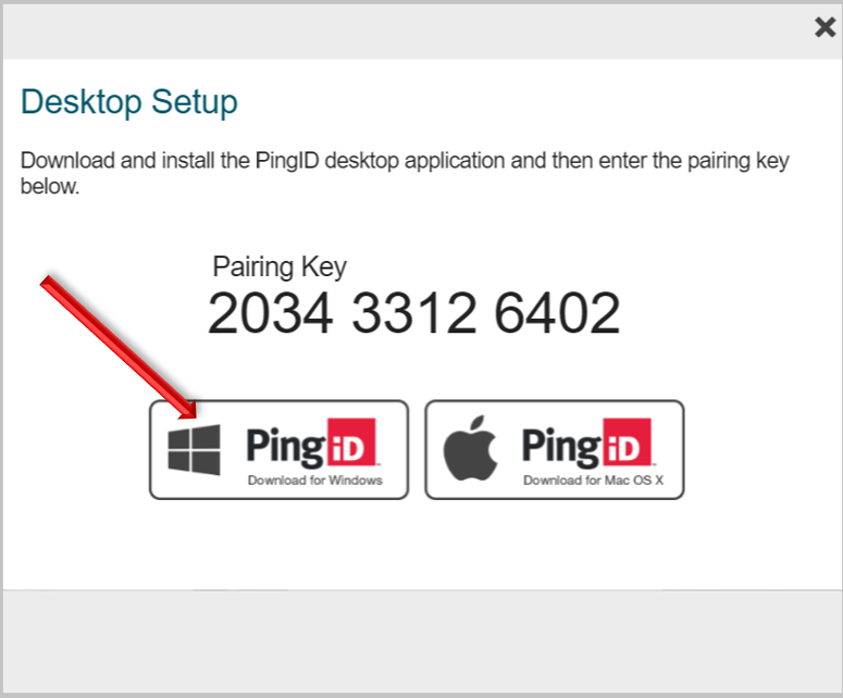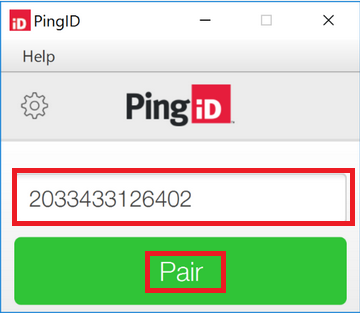8. Paste the pairing key from step 4 into the PingID window > select Pair.