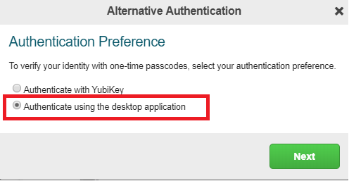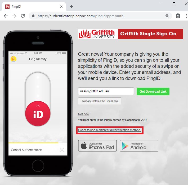2. From the PingID registration screen > select I want to use a different authentication method.