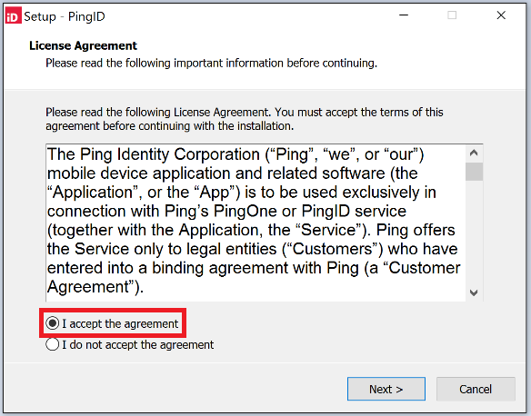 6. Review the Software License Agreement > check I accept the agreement > select Next.