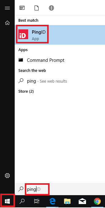 5. Open PingID application by clicking on the Start Menu > search for PingID desktop app.