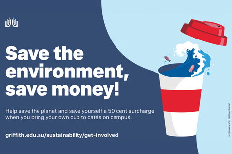 Help keep our state beautiful with Griffith! Bring your KeepCup or mug to our cafés and save yourself a 50-cent surcharge on disposable cups. Let's make a difference together—one cup at a time!