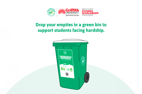 Help the environment and support Griffith students in need! Drop your empty containers into a green bin on campus to fund Brighter Futures Scholarships through Containers for Change.
