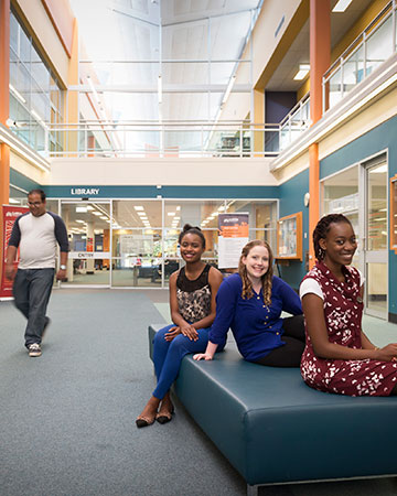 Our double-level Logan library offers individual and group study zones. There’s also a community lounge and plenty of outdoor space where you can study or unwind.