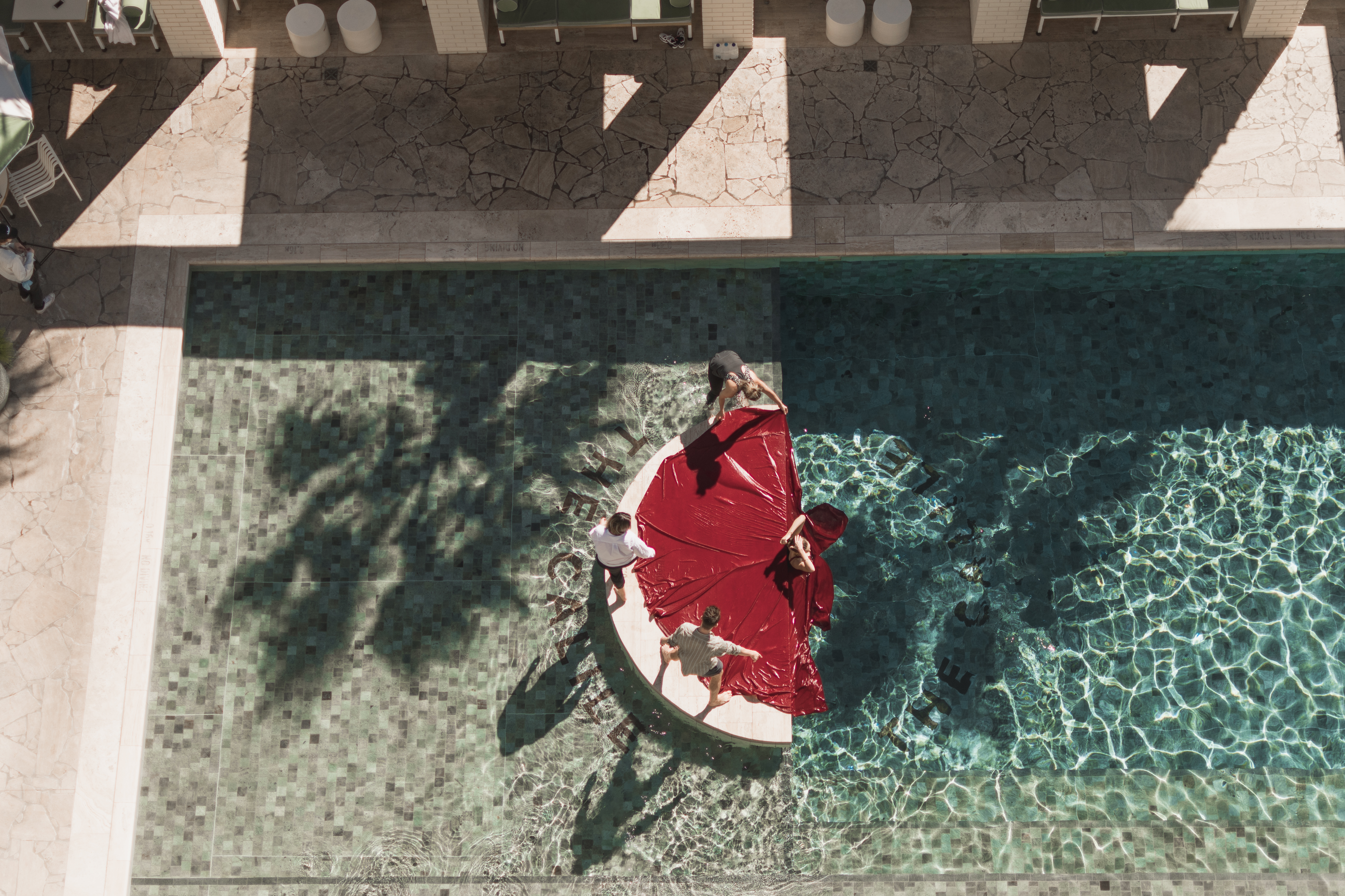 "We only had one chance to get the hero shot. There was certainly no backup for a second take when you drop a ballerina into a pool, wearing a custom made, billowing Bec Malouf piece!" remarked Lauren.