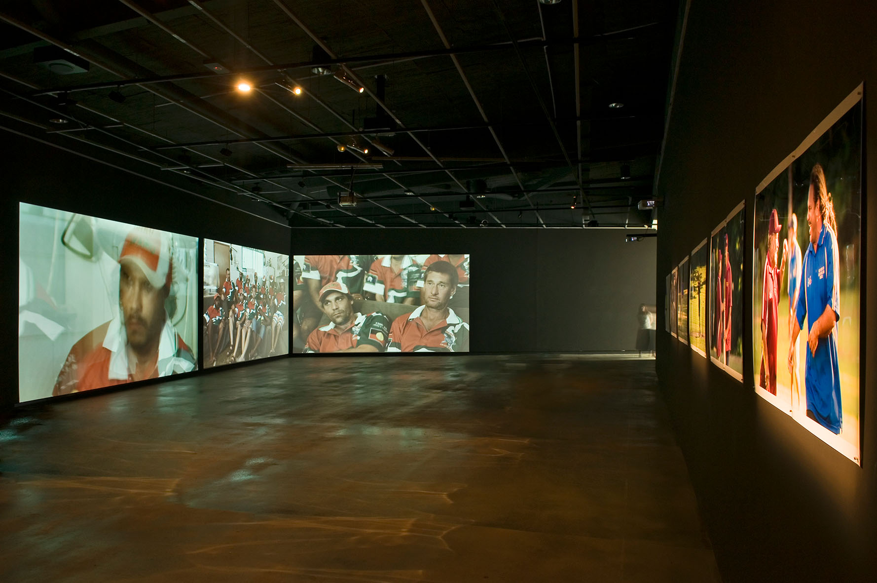 The Waru Cricket Project has at its core an acute sense of inquiry and identity. It is comprised of new work and features three components: A three screen video installation documenting the philosophy and social dynamic of the Waru Cricket Team (an all Indigenous cricket team who are based in Innisfail); a 3-D installation consisting of an assortment of new and used cricketing equipment and paraphernalia associated with the Waru team, customised to reflect their philosophy and identity, and a photographic series (large scale digital prints) that documents the energy and spirit of the Waru Team.