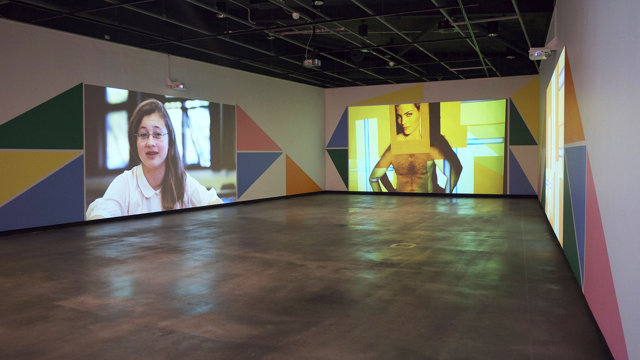 Central to the exhibition is a large 3 sequence video installation. Here an unknown interviewer puts questions to five adolescent teens who role play amid a teaching environment resonant of one of the artist’s favorite films, The Breakfast Club (1985), a classic cinematic vehicle that fused ideas about youth, cliques, fashion, attitude, popular culture, isolation and confession.