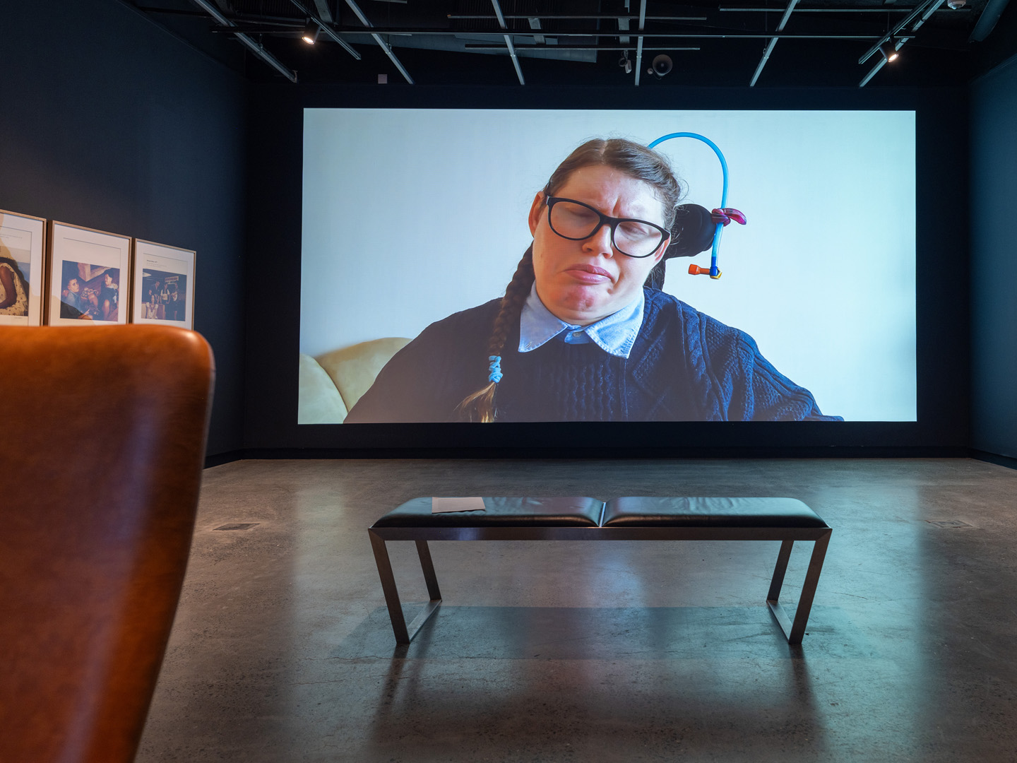 Image: Lauren Lee McCarthy and David Leonard ‘I.A. Suzie’ 2019, video installation (screen), sound, 9.04 minutes, orthopaedic chair. Courtesy of the artists