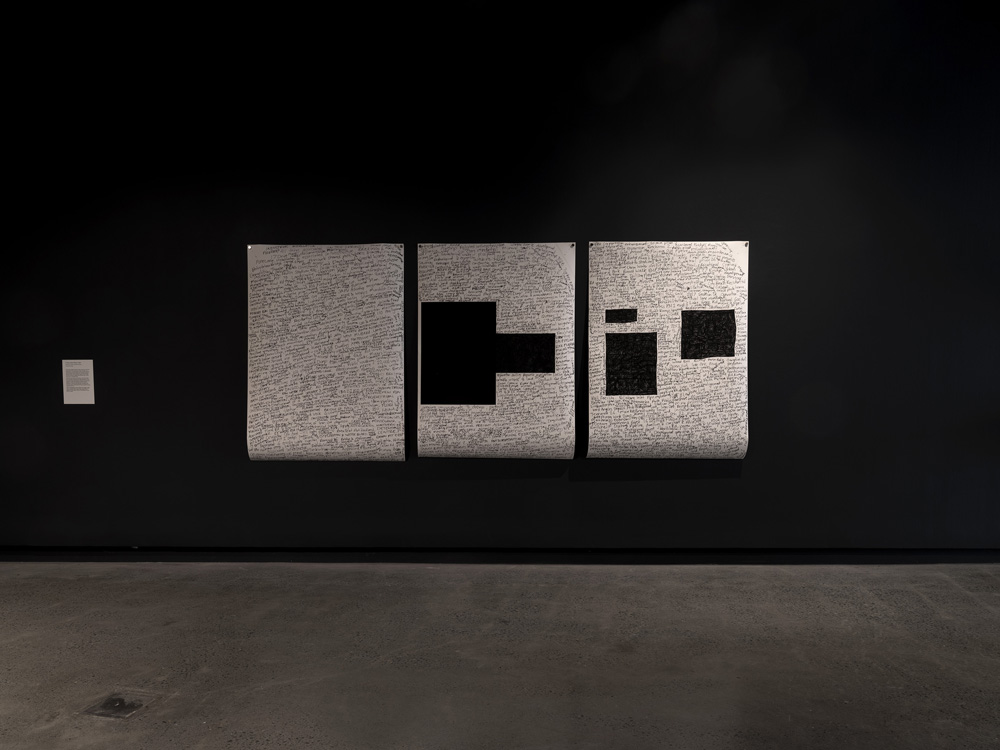 This exhibition includes several other works that challenge viewers to recognise the ongoing nature of colonialism, such as Nine Hundred and Sixty Seven, where ex Rio Tinto CEO Sam Walsh AO recites the project summaries of 967 applications seeking legal permission to “destroy, damage or alter an Aboriginal site” under legislation that enabled the destruction of Juukan Gorge by his former employer.