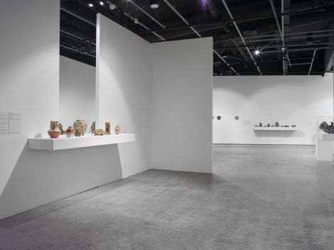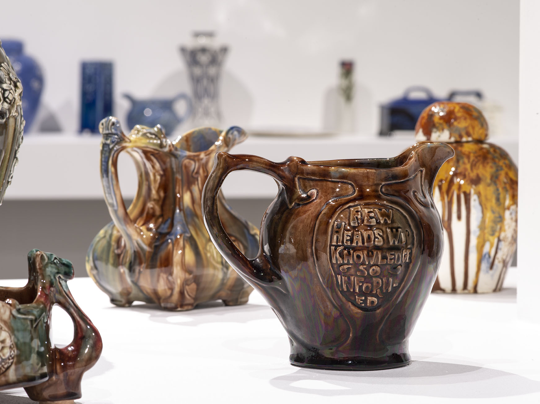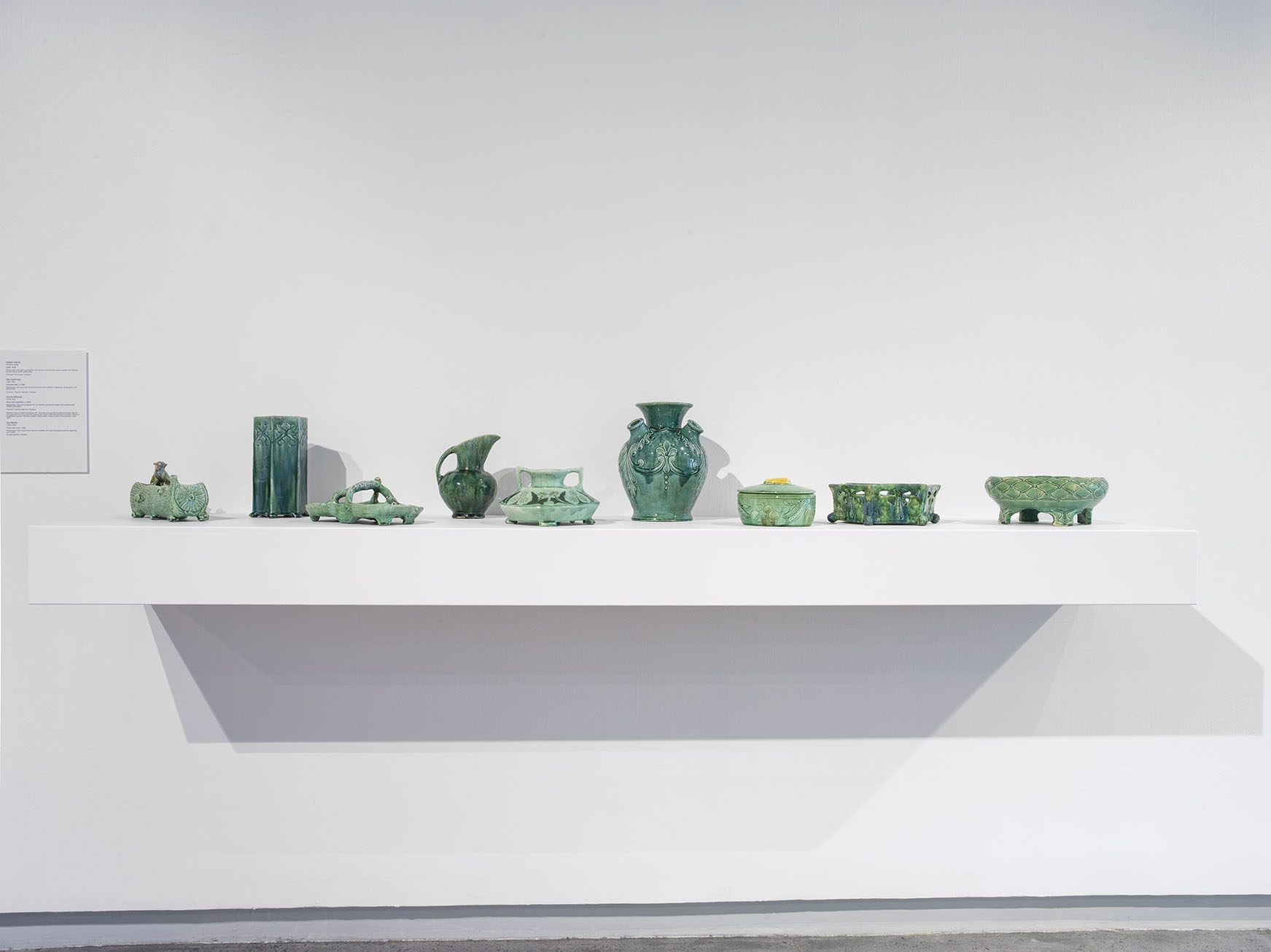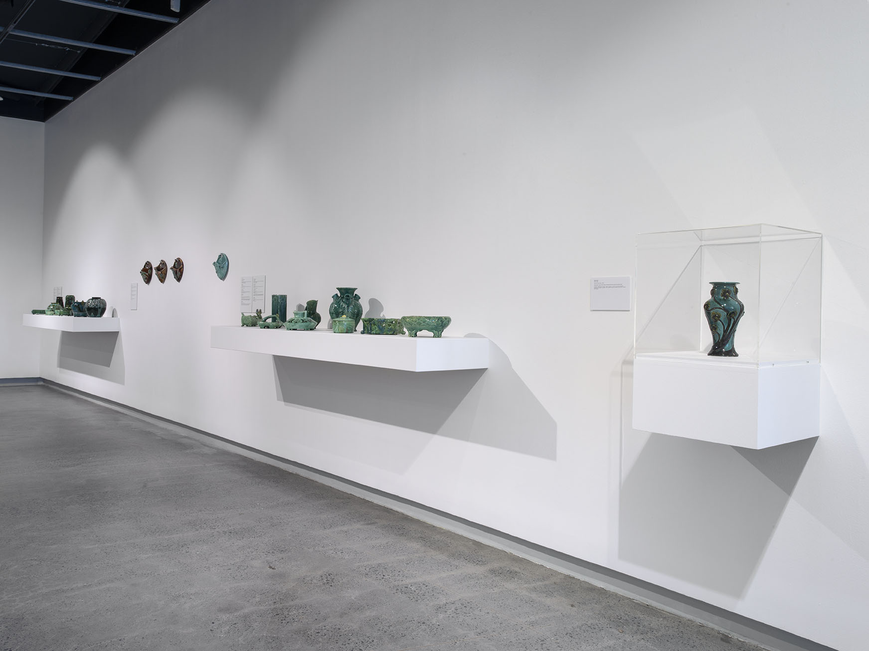 The exhibition takes as its nucleus the work of pioneering artist Lewis Jarvis (L.J.) Harvey, his students, and the distinctive style that became a hallmark of what is now known as the Harvey School. Harvey’s teaching method was firmly grounded in the British Arts and Crafts Movement, which advocated the revival of hand-production methods. His pottery classes, initiated in 1916 at the Central Technical College in Brisbane, operated for over thirty years and encouraged students to work local clays by hand, a distinct and purposeful alternative to factory-made household items during a period of burgeoning mass manufacture. Harvey’s method was unique globally, and attracted the attention of Vi Eyre, Nell McCredie, and Annie Mitchell, who became prominent practitioners and who transferred his influence interstate.