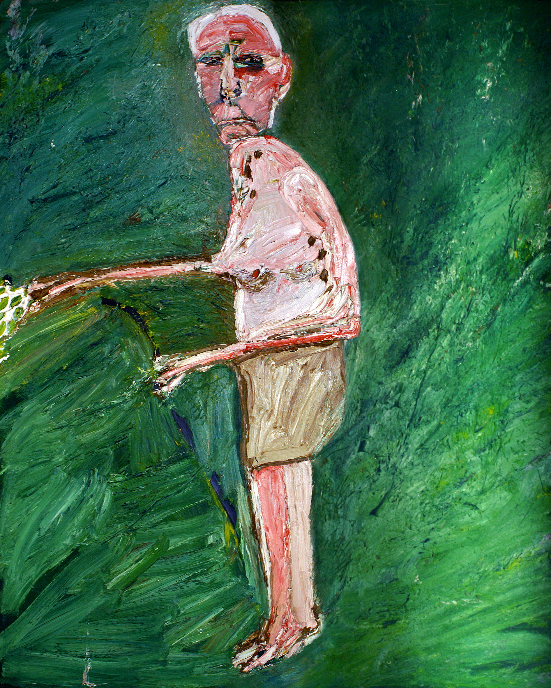 Davida Allen My Father-in- law Hosing His Celtis Trees 1986 Oil on linen Collection: Ipswich Art Gallery. Purchased with funds donated by the Ipswich Arts Foundation, 2000 Courtesy the artist and Philip Bacon Galleries, Brisbane