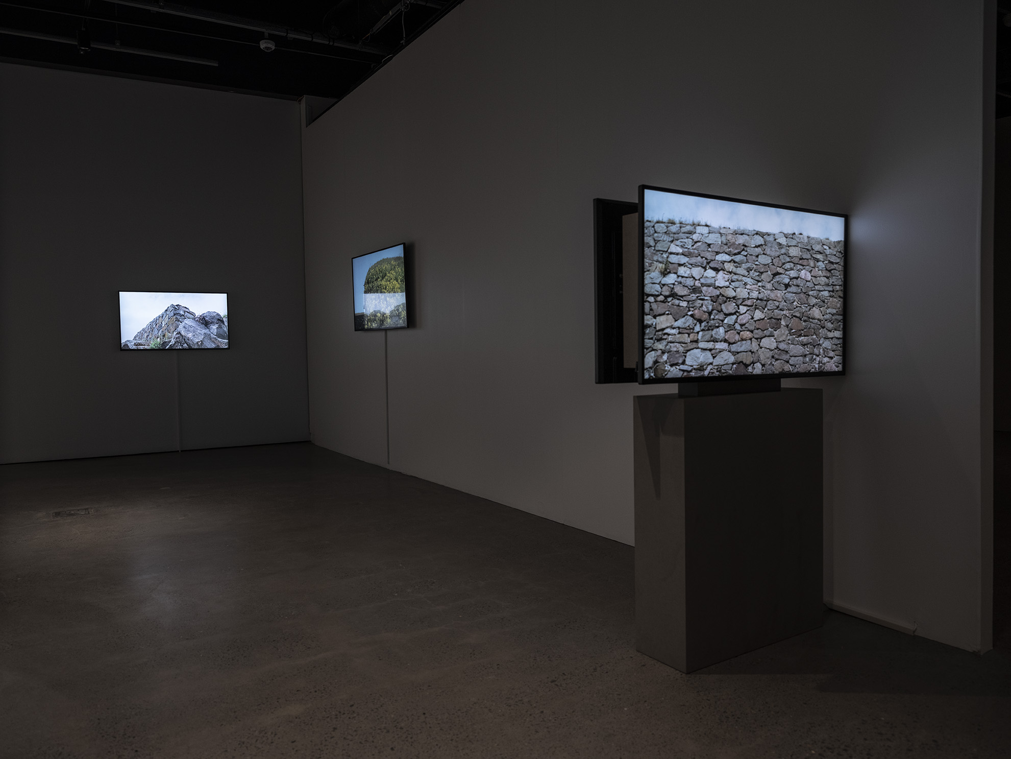 These works are speculative and archaeological, responding to architectural, social, and technological settings. Sound is always a central component in their video works, reinforcing the dimensionality and architecture of site through orienting the role of the viewer.