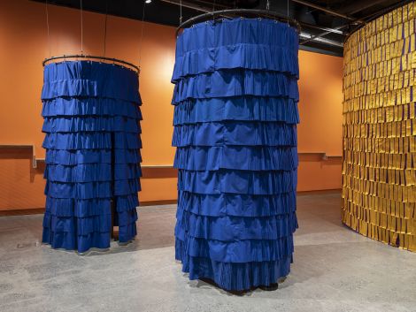 This temporary architecture creates a playful, mutable setting to host a series of dialogical events throughout the the exhibition. These spaces are also open for use by educators, collectives or students to occupy for conversation, classes or self-directed reading groups.