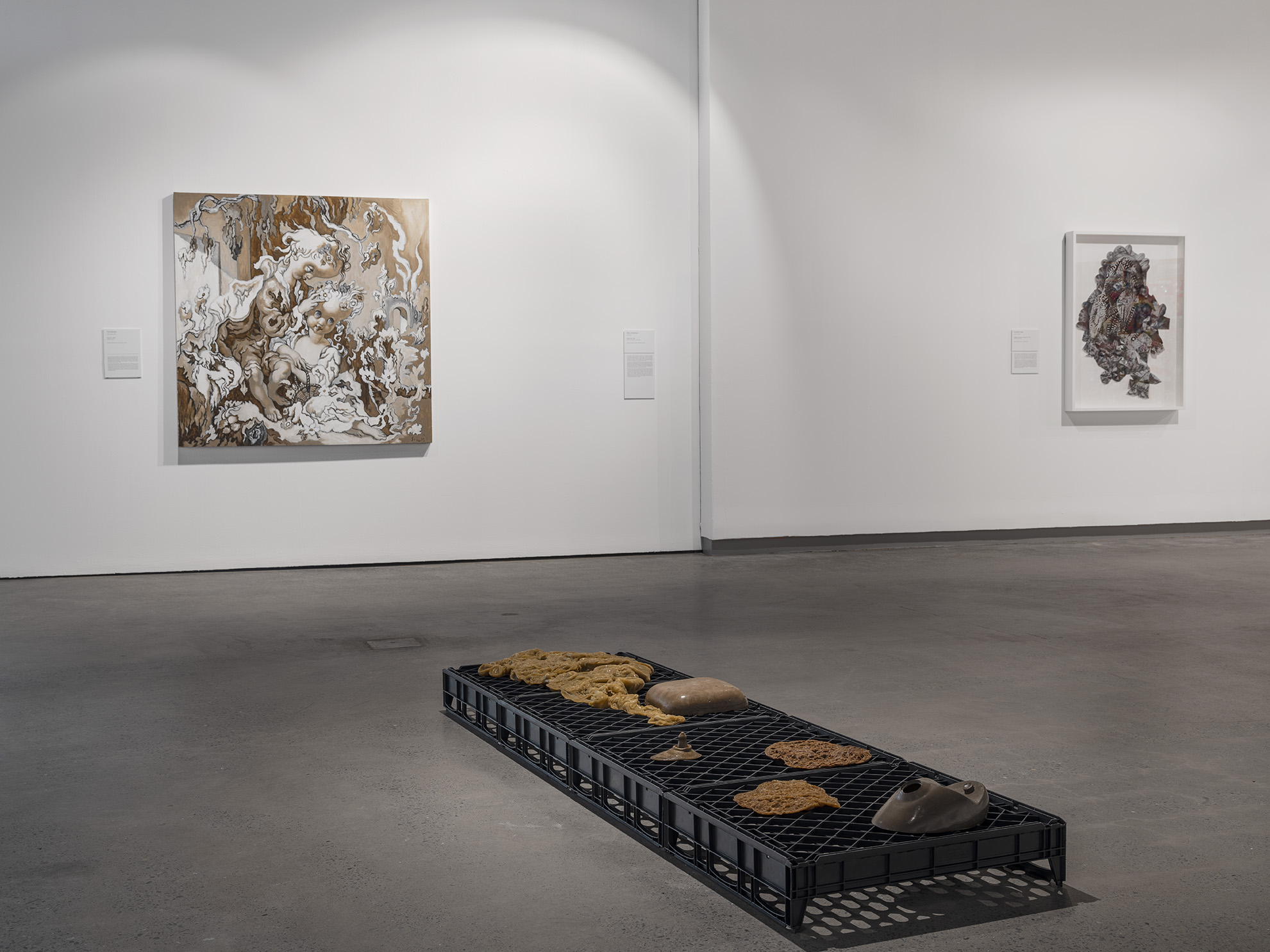 In a time of turbulent politics and mediated messages, these artists destabilise and recombine images, forms, and bodies to offer critical perspectives and new ways of being. Their works question normative ideas and explore contemporary issues of race and identity by utilising historical grotesques and various visual strategies—from the horror vacui of elaborate surfaces, through the abject and informé, to the ornamental, erotic, and transgressive.