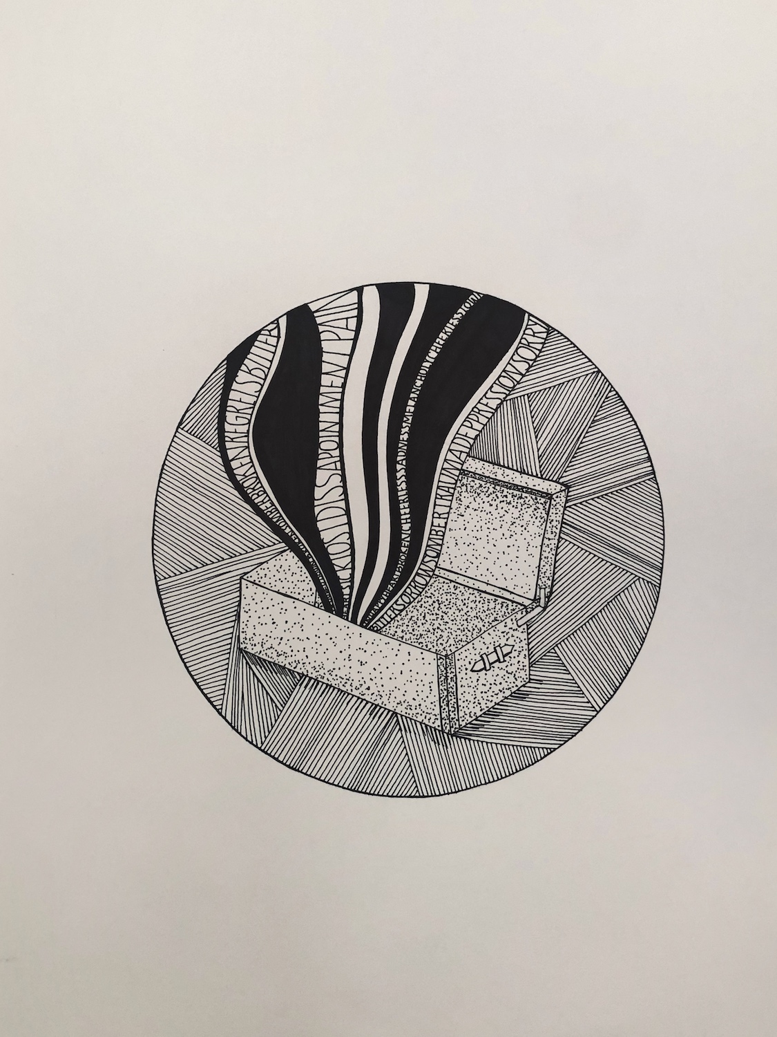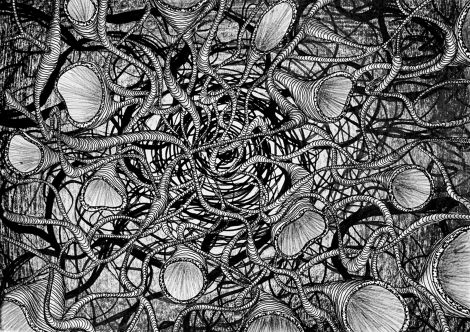 This exhibition comprises a curated selection of outcomes of student work from the Drawing 1 course 2362QCAD. The drawing assignment asks that students choose a paragraph of text from a novel or poem and to 'elucidate' these texts. The word 'elucidate' is chosen rather than illustrate, because strict visual description, in a graphic sense is not asked for. This task is more about illumination rather than illustration. The drawings completed in response to the text should not be obvious or accurate recreations of the exact imagery described in the text. The chosen text is just the beginning.