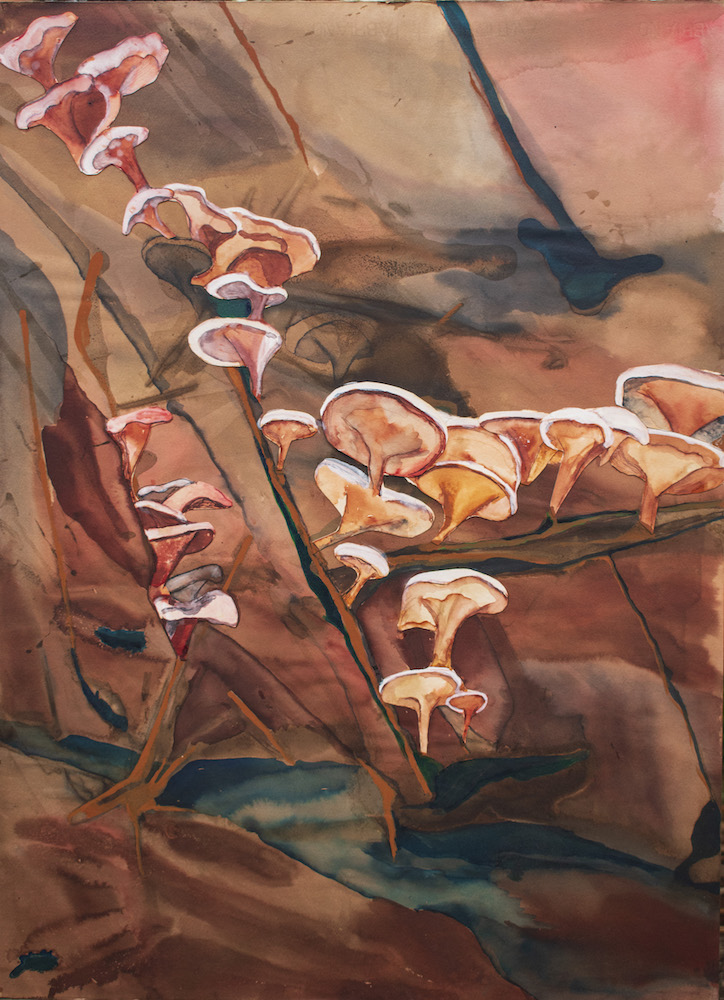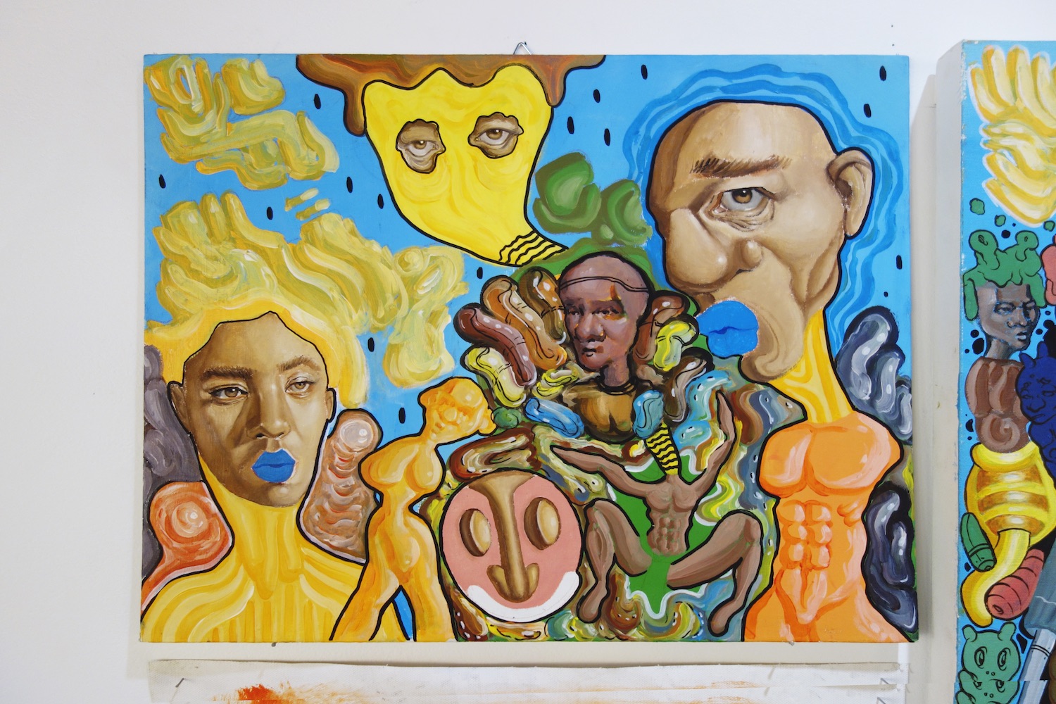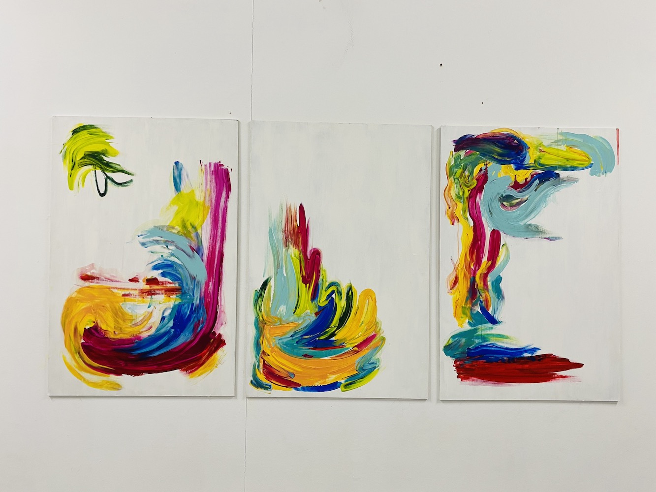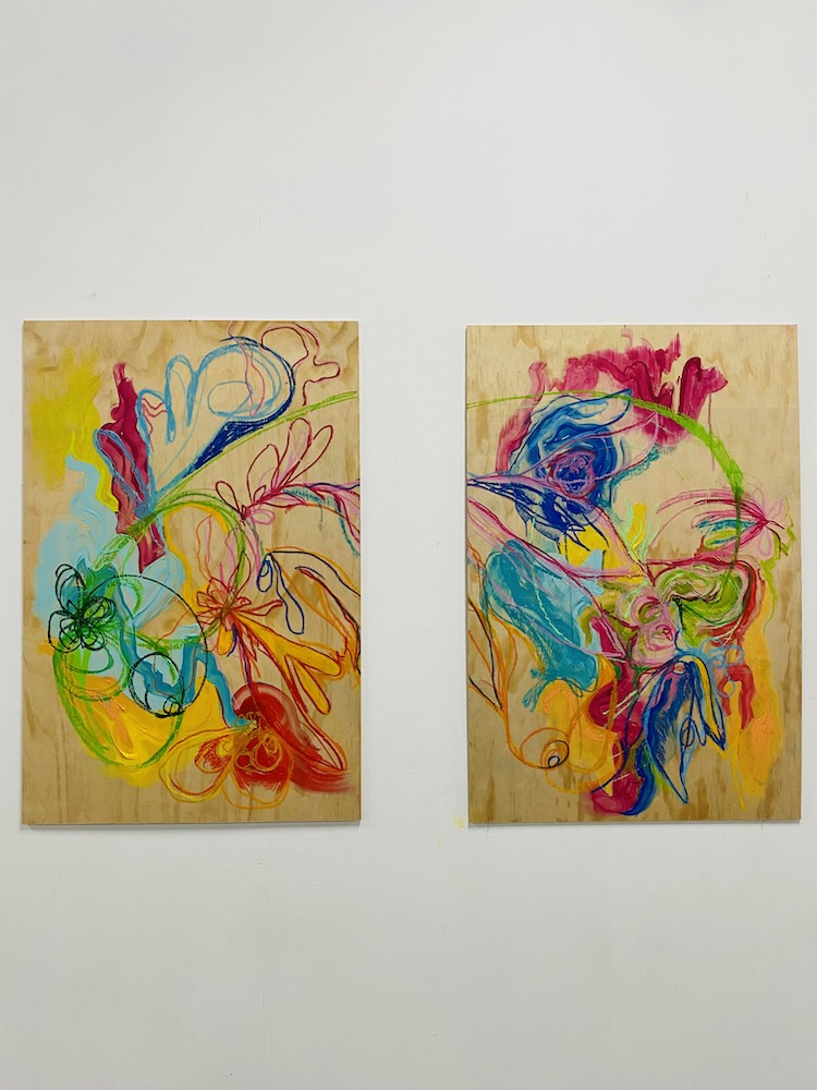 My project, which I left untitled, consists of a series of mixed media paintings that explore the impact that natural forms have on our lives in a fast-paced society. This work relies on a meditative and gestural approach where I create my own biomorphic forms from an internal floral influence whilst listening to calming music and creating through the act of "slowing down".