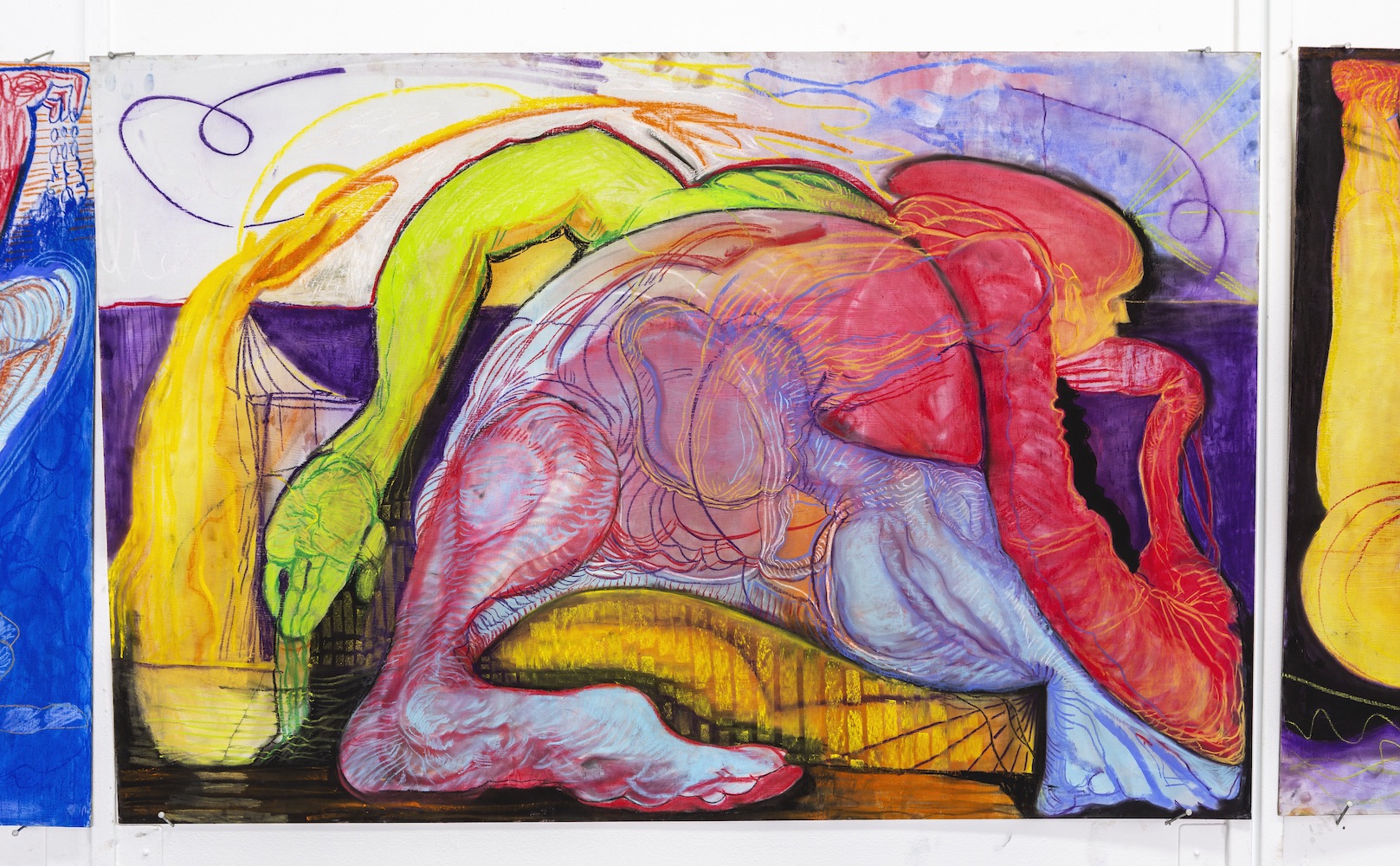 Ella Senbruns is an emerging Brisbane-based artist. Working mainly between painting and drawing, Senbruns’ biomorphic constructions teeter the line between figuration and abstraction. She unfurls and reconstructs the body through sinuous, whiplash linework, valuing the flow of forms and material qualities of line over representation. She is fascinated by the mechanics of human pattern recognition.