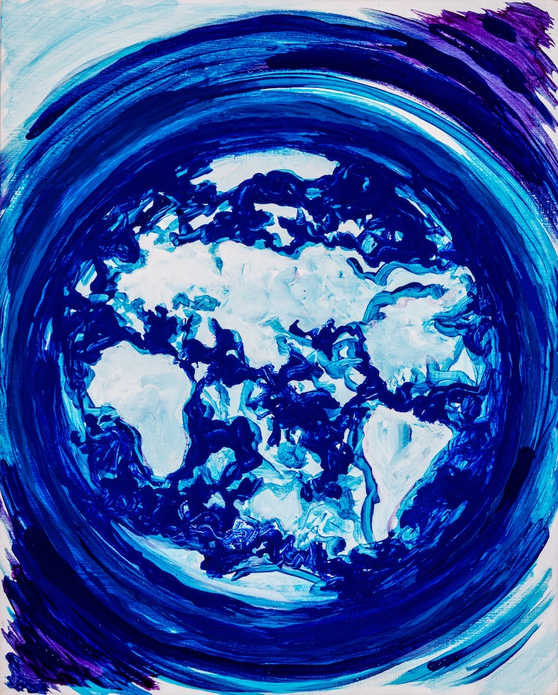 Derived from a dream the series Earth and See reminds us that capitalism and consumption may affect environments in unseen places. By depicting all the continents on the face of the Earth simultaneously the viewer is able to connect to these places. It is my aim to encourage conversations about consumer behaviour and the flow on affects our choices are having on Earth as a whole living organism.