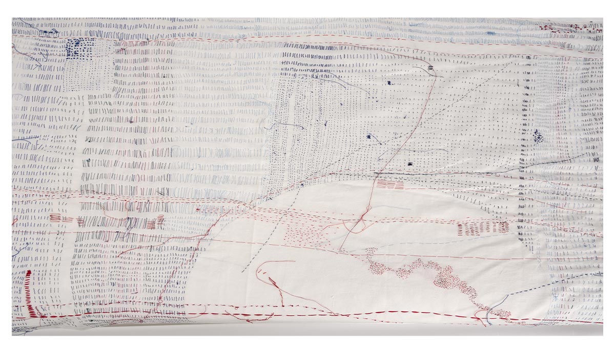 In response to this question, three monumental, stitched artworks were created which record the unseen labour of life as a mother and artist. The labours of the home are rendered in an intricate, embroidered artwork that tallies these efforts onto large-scale fabric substrates composed of reclaimed antique cotton pillowcases and vintage cotton threads. Conducted around the kitchen table, my artistic practice occurs between, around and after mothering duties.