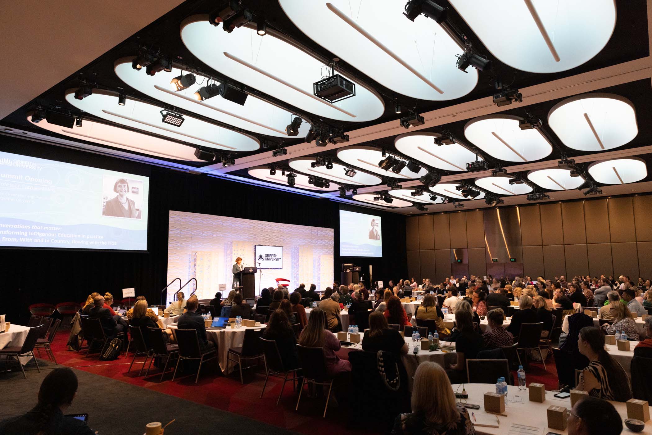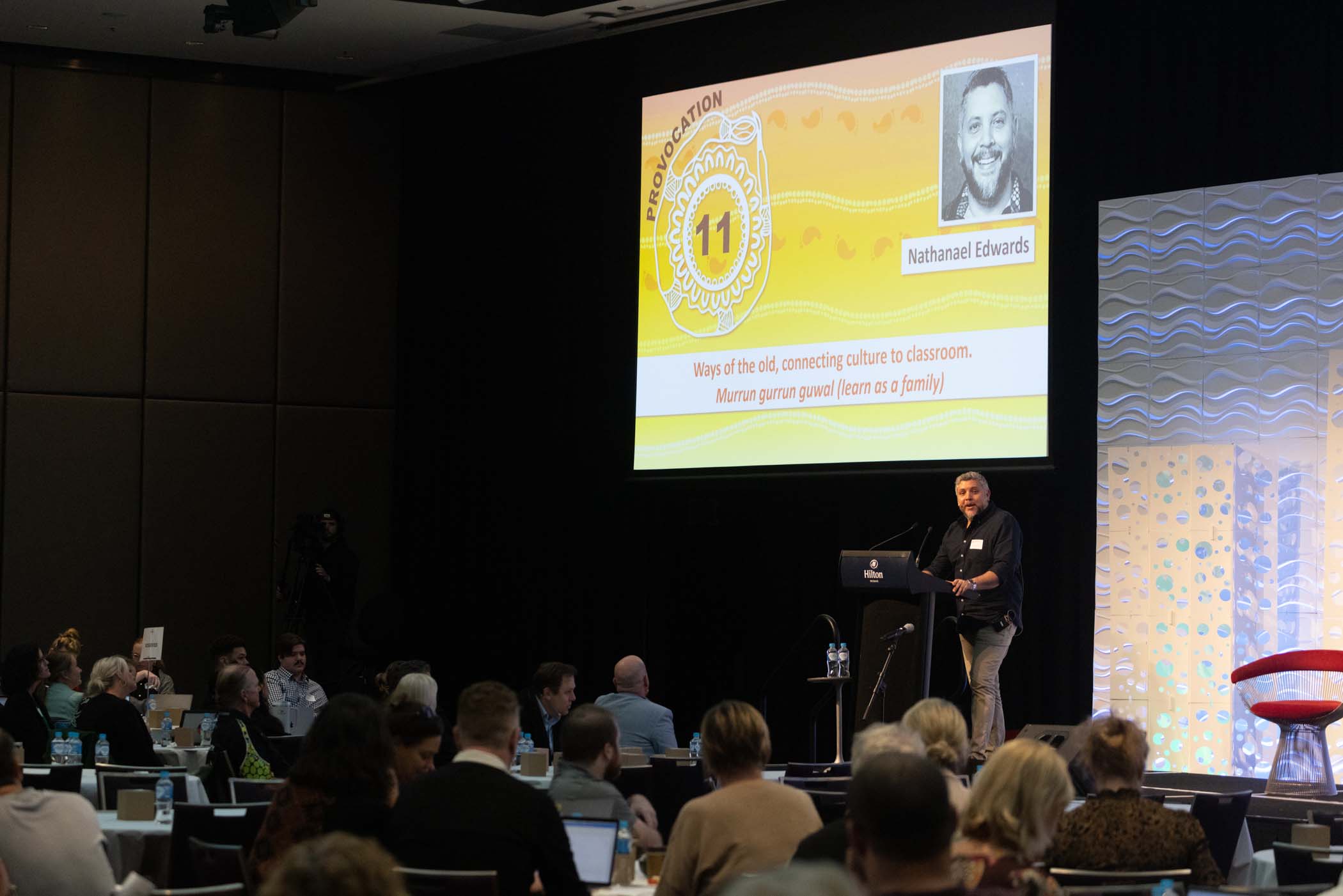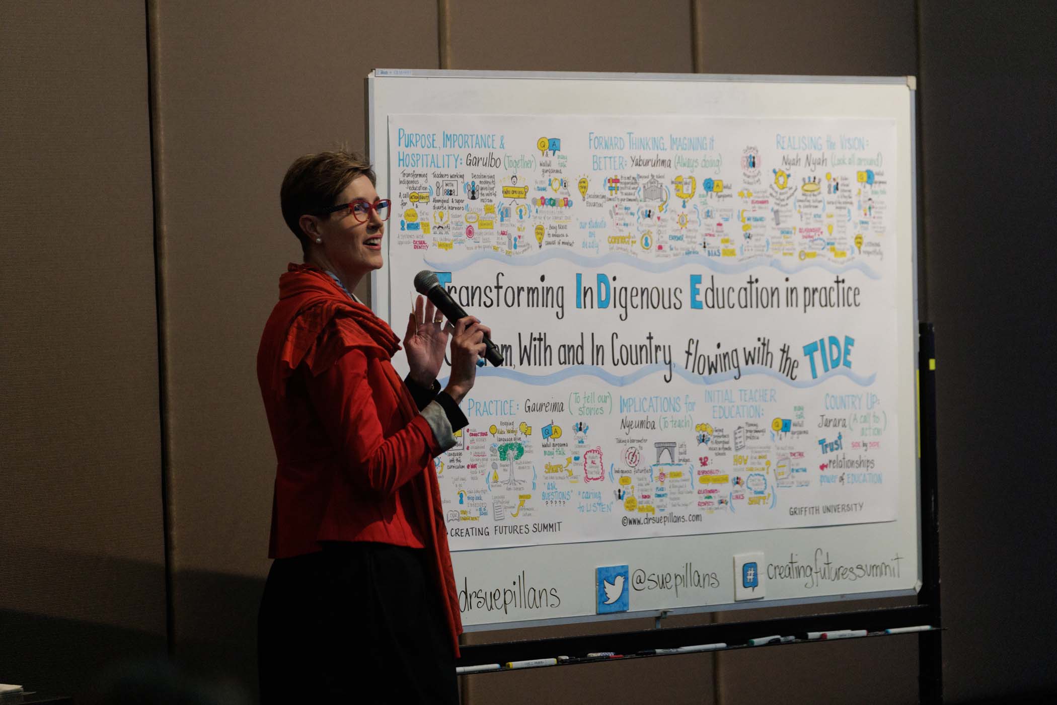 The Summit brought together a wide range of stakeholders with an interest in teaching futures, such as university delegates, school leaders, experienced and beginning teachers from all school systems and sectors in Queensland, initial teacher education students, and peak educational organisations including the Queensland College of Teachers (QCT) and the Queensland Council of Deans of Education (QCDE), both of which were committed collaborators in the event. The event moved swiftly with 17 challenging 6-minute provocations and 10-minute panel discussions led by remarkable education leaders and public figures in Aboriginal and Torres Strait Islander education. Delegates were engaged in a journey of generating ideas and voting to create a shared, futures-oriented set of outcomes by utilising the digital interactive Summit tools.