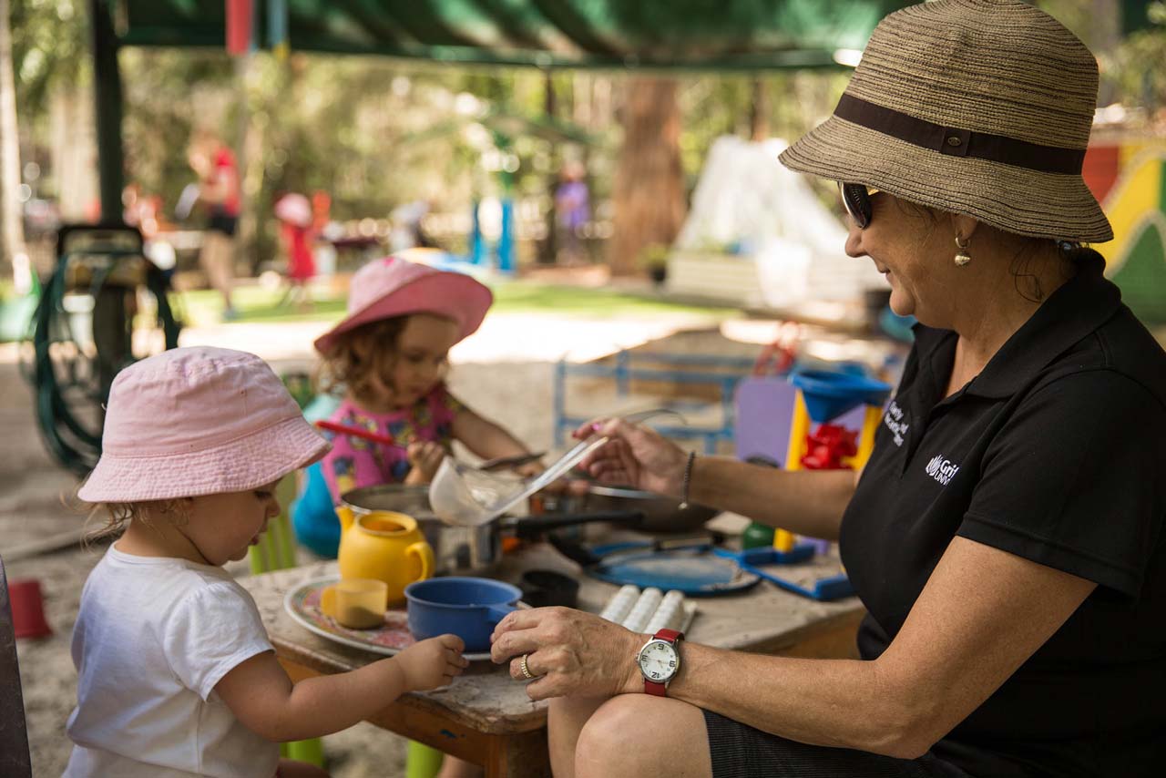 On a typical day with us: your child might find their inner artist, drawing and painting outside to their heart's content. Once their masterpiece is complete, they'll attend a sand tea party. There might be some fake 'grass' that needs mowing. 12 pm rolls around and it is time for snacks. We'll then settle down for a documentary on sustainability.