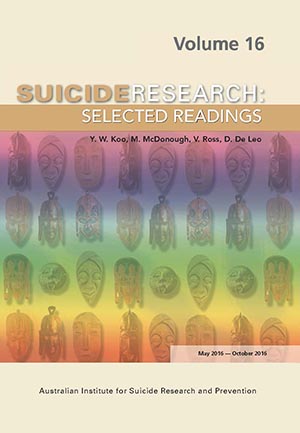 Citation: Y. W. Koo, M. McDonough, V. Ross, D. De Leo: Volume XVI. Suicide Research: Selected Readings. Australian Academic Press, Brisbane, 2016.