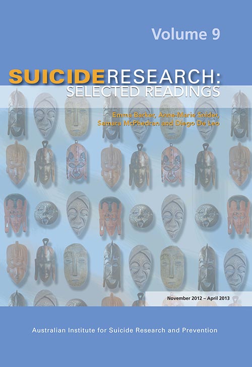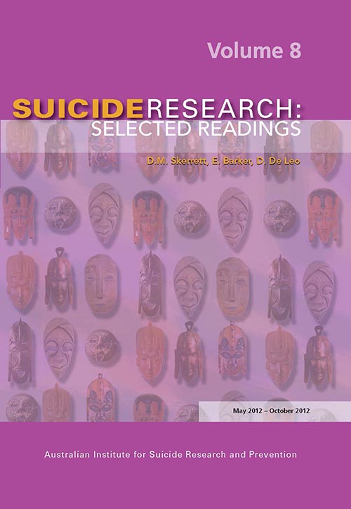 Citation: DM. Skerrett, E. Barker, D. De Leo: Volume IX. Suicide Research: Selected Readings. Australian Academic Press, Brisbane, 2012.