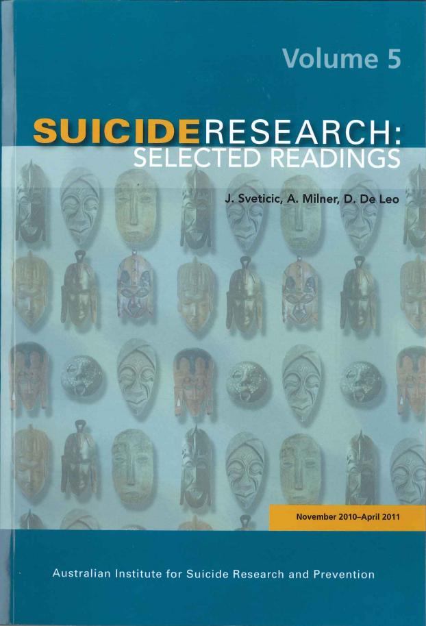 Citation: K. Andersen, J. Sveticic, D. De Leo: Volume I. Suicide Research: Selected Readings. Australian Academic Press, Brisbane, 2009.