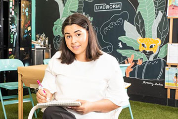 Zoe Murray (studying a Bachelor of Design) and Associate Professor Christopher Klopper are in the Liveworm studio discussing studying creative industries.