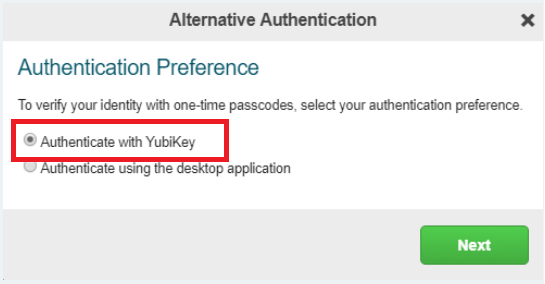 Make sure the Alternative Authentication window is the active window on your computer, and then tap the YubiKey.