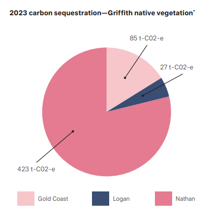 Griffith is taking multiple actions to reduce our energy consumption and carbon emissions including a clear process for carbon management and reporting (see our 2024 Carbon Management Report), while also reducing carbon dioxide emissions. This is achieved through energy-efficient renovations and buildings, upgrading buildings to higher energy efficiency, data centre efficiency, aviation emissions reductions, powering Griffith through clean, renewable energy, carbon sequestration on campus, and sustainable transport for staff and students.