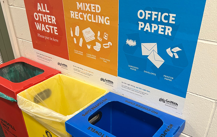 In 2024, the Griffith Sustainable Waste Solutions Working Group was established to coordinate actions between Campus Life, Griffith Sustainability, Crown Waste Solutions (waste provider), and ISS Facility Cleaning Services.